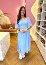 VESTIDO MIDI C/LASTEX NO CORPO – CELLYFAAHION – Charmoso, delicado e extremamente confortável, o vestido midi em viscolinho é a peça ideal para quem deseja unir leveza e sofisticação no dia a dia. Confeccionado em tecido fresco e macio, ele traz uma estampa delicada, que garante um visual romântico e atemporal.