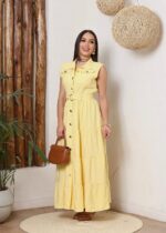 VESTIDO MIDI DIANA – CELLY FASHION –  Tecido Sensorial com Botões e Cinto Faixa!